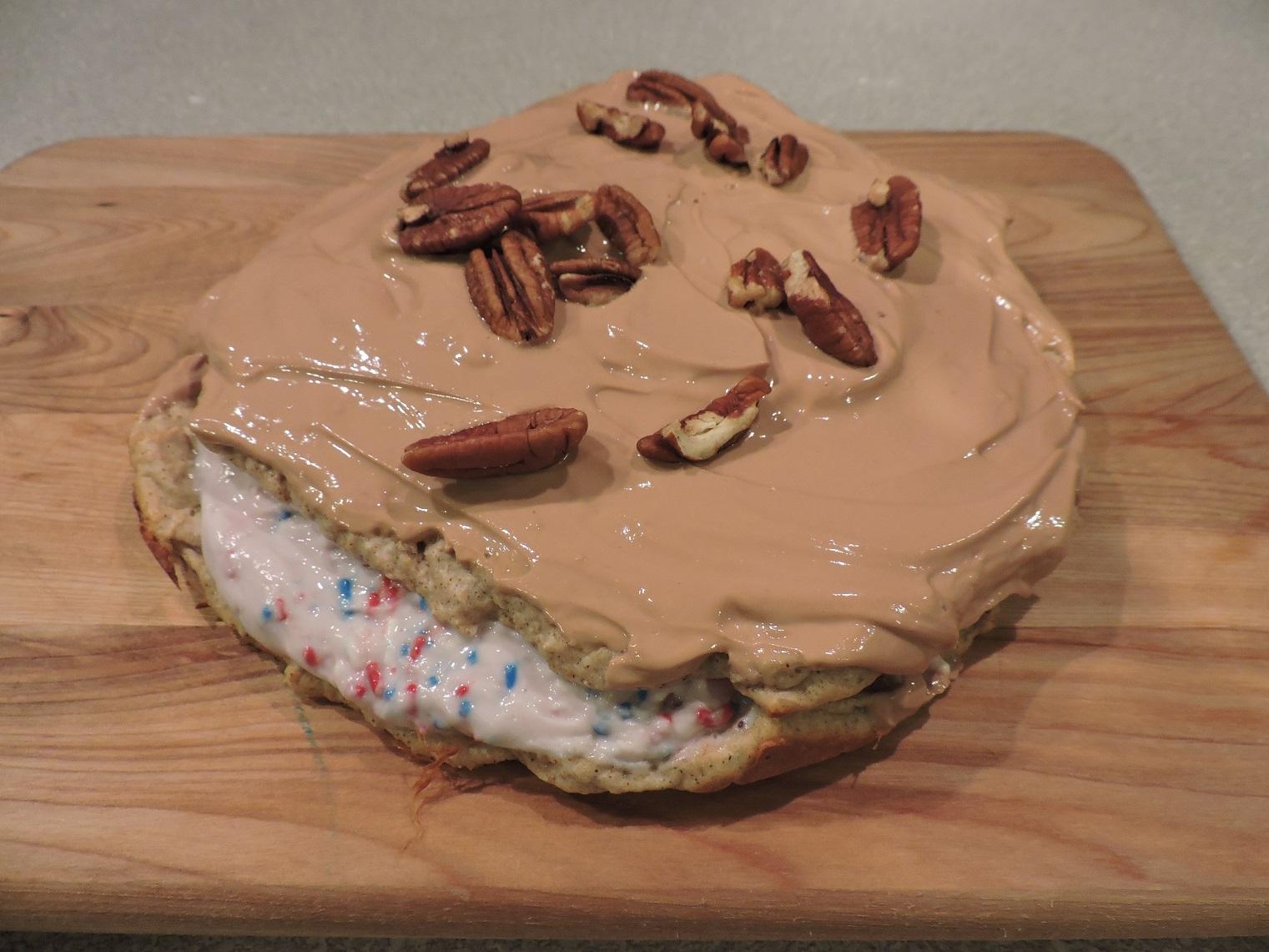 - Once cooled, start layering the cakes with the Greek yogurt. Add any additional toppings for presentation!